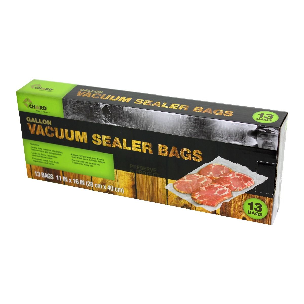 Chard Vacuum Sealer Bags are the perfect tool when it comes to preserving and packaging your favorite foods. Storing foods that are in season will save you time and money with delicious meals later. Whether you are sealing dehydrated jerky from your last hunting trip or preparing garden vegetables for long-term storage, Chard Vacuum Sealer Bags provide great results by drawing air out quickly and locking in flavor and nutrition. Prolong the life of your favorite foods and snacks by eliminating freezer burn and wasted food with these vacuum sealer bags that are pre-cut and pre-sealed on three sides for easy use. Made from heavy-duty, BPA-free material. Available in various sizes, lengths and quantities. Chard Vacuum Sealer Bags are universal and work with all brands of vacuum sealers.