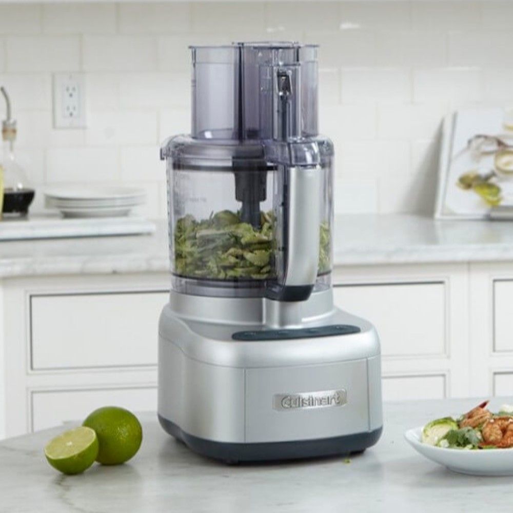The Elemental Collection 11 Cup Food Processor (Silver) by Cuisinart gives you 550W of food-processing power in a contemporary and stylish design. With an 11-cup work bowl, this versatile and multifunctional food processor is great for making spreads, pureeing soups and sauces, or grinding nuts into a healthy butter alternative. The included reversible shredding and slicing blade makes slicing tomatoes or shredding cheese as quick and easy as pushing a button! A rubberized touchpad control features settings for High, Low, Pulse, and Off for easy use. All removable pieces, included the blades, are dishwasher-safe, while the motor base unit and control panel are easy to wipe clean. Put the powerful and stylish Cuisinart Elemental 11 Cup Food Processor to work in your kitchen and tackle all your food processing tasks with the push of a button.