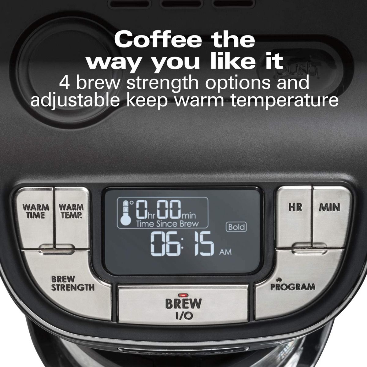 - Four brew strength options | Adjustable keep-warm feature