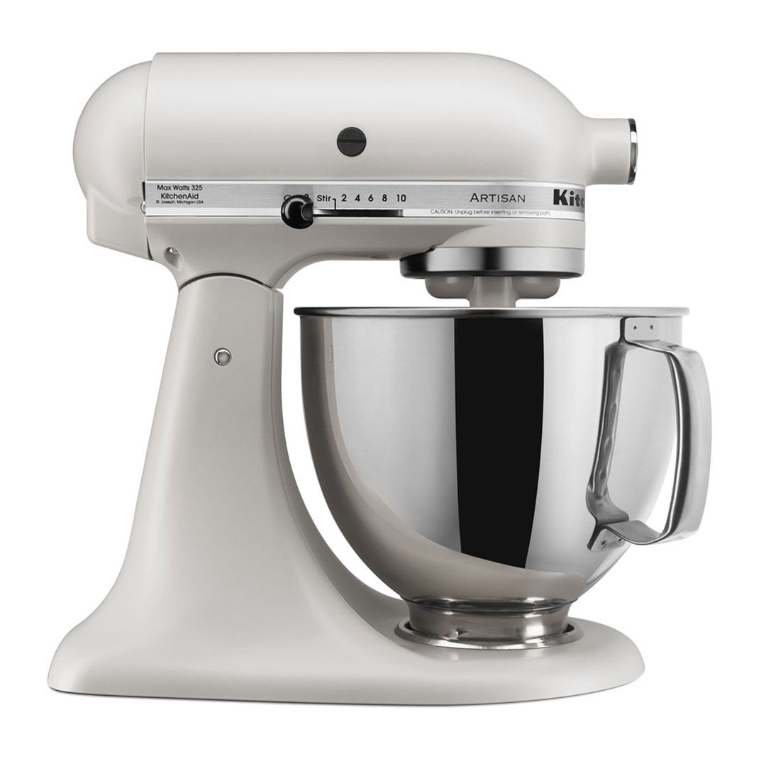 Mix up a batch of brownies, knead homemade pizza dough, or whip up meringue with the KitchenAid 5-Qt Artisan Stand Mixer! From desserts to appetizers and main dishes, the Artisan will open up a world of tasty possibilities. In matte Milkshake, the pale grayish color of a freshly mixed ice cream shake, it’s a neutral shade that will match any kitchen while bringing a unique pop of color to your counter.