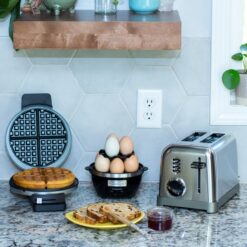 Rejoice, for the perfect toast is at the tip of your fingers! The Krups Breakfast Set Chrome 2 Slot Toaster is a fantastic appliance capable of meeting everyone’s needs when it comes to toasted bread, bagels, and more. Some like their toast dark and some like it light, the Breakfast Chrome 2 Slot Toaster by Krups features an adjustable browning control knob so that everyone can toast their bread to their preferences. And of course, bagels are no match for this toaster. Simply press the defrost button and then the bagel button to thoroughly cook frozen bagels. As a bonus, available presets are included to quickly begin toasting. Choose from Cancel, Defrost, Reheat, and Cancel. The Krups Breakfast Set Chrome Toaster is stylish and sleek; perfect for you and your family for those fast-paced mornings or lunchtime sandwiches.
